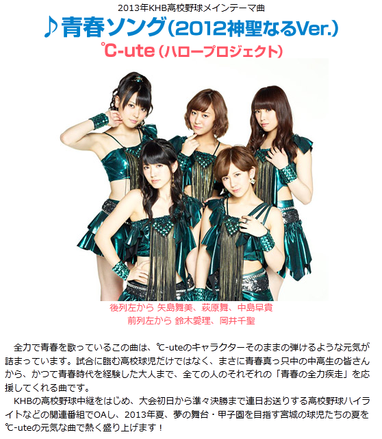 @yakyu_khb: 今年のKHB高校野球メインテーマソングは、℃-uteの♪青春ソングです!