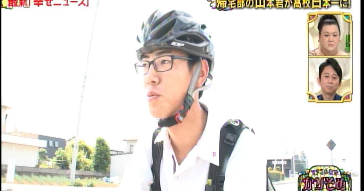 帰宅部の山本くん、高校までの10kmを自転車通学するうちにロードレースに目覚め、自転車歴たったの10ヶ月で高校日本一。しかも学校に自転車部がないのでアシスト無しの単騎で優勝の快挙。 http://pic.twitter.com/BudJ3fJKiQ