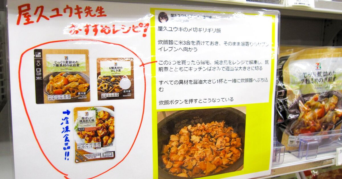 ラノベ作家の屋久ユウキ先生がセブンイレブンの商品を使用したお手軽レシピをツイート→セブンイレブンの人がそれを店頭POPにしたらこうなった「これは出来るセブンイレブン」 - Togetter