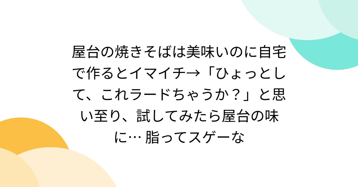 屋台の焼きそばは美味いのに自宅で作るとイマイチ→「ひょっとして、これラードちゃうか?」と思い至り、試してみたら屋台の味に… 脂ってスゲーな