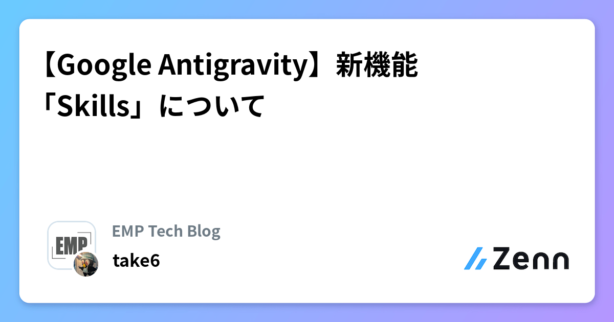 https://cdn-ak2.favicon.st-hatena.com/64?url=https%3A%2F%2Fzenn.dev%2Femp_tech_blog%2Farticles%2Fgoogle-antigravity-skills / Photo: