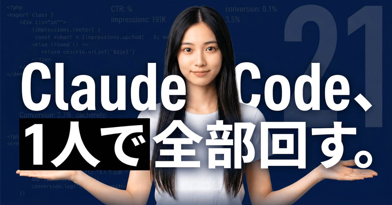 調査・執筆・画像生成・事実確認・SNS投稿・会計処理・スケジュール管理。21の業務を1つのClaude Code環境に統合したら、1日の実働が60分になりました。 この記事は全文無料(期間限定)で閲覧できます。 見出し画像はAIで生成しました。 プロンプトは140,000文字超えの記事に掲載中。 私はグラフィックデザイナー出身で...
